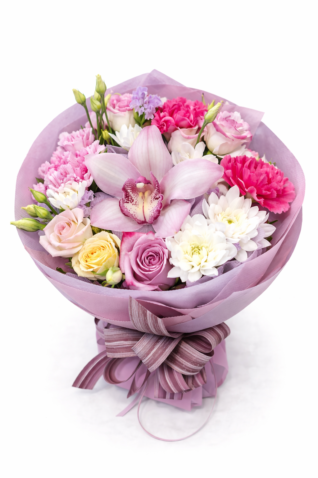 Нежна и изискана аранжировка в пудрени розови нюанси, съчетаваща орхидея, рози и фини сезонни цветя. Перфектен избор за стилен подарък, който излъчва елегантност, внимание и топло отношение.